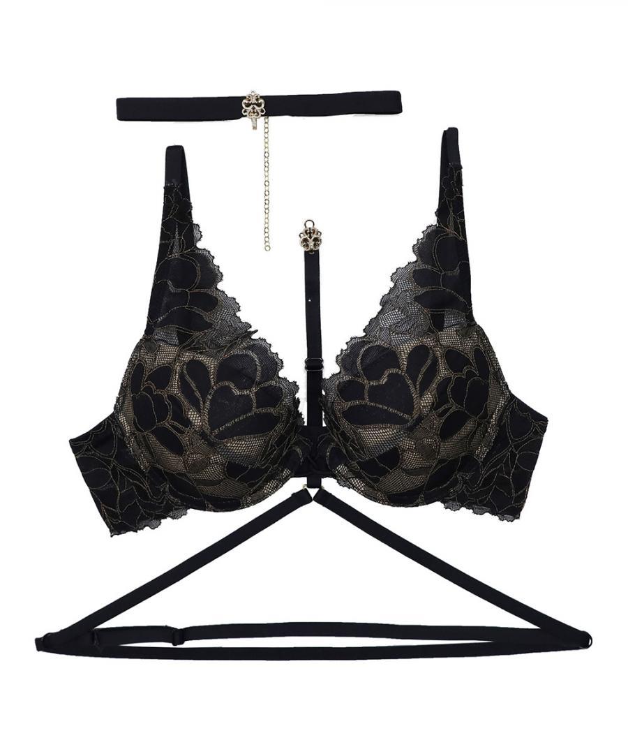 Whispers ハーネス付きデコルテレースモールドカップブラジャー【Black】