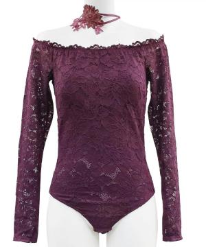 Harmony in Bloom チョーカー付きオフショルレースボディスーツ/テディ