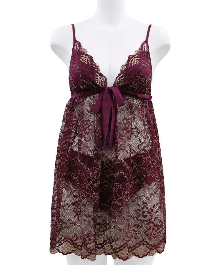 In Your Heart 総レースベビードール&ショーツ【Dark Red】
