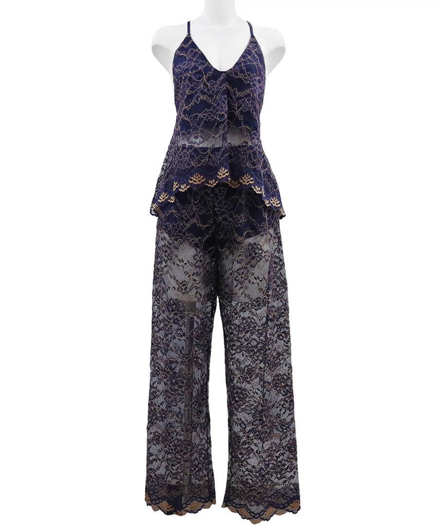 In Your Heart 総レースロングパンツセットアップ【Navy】