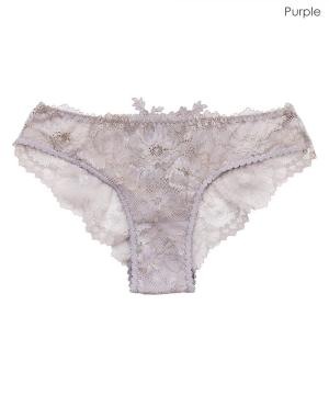 ヌードカラーのチュール生地×レースのヒップハングショーツ。