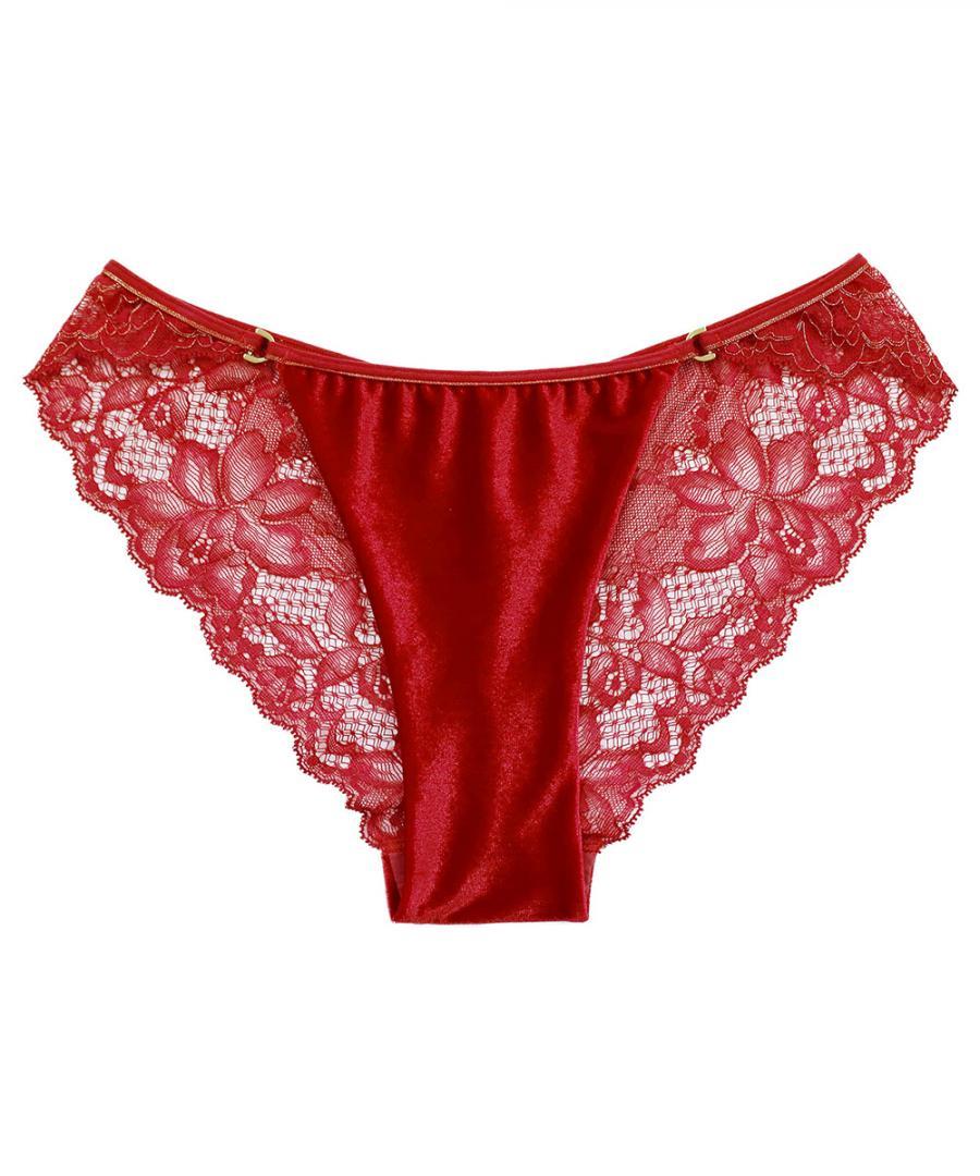 Velvet Sin ベロア×レースショーツ【Red】